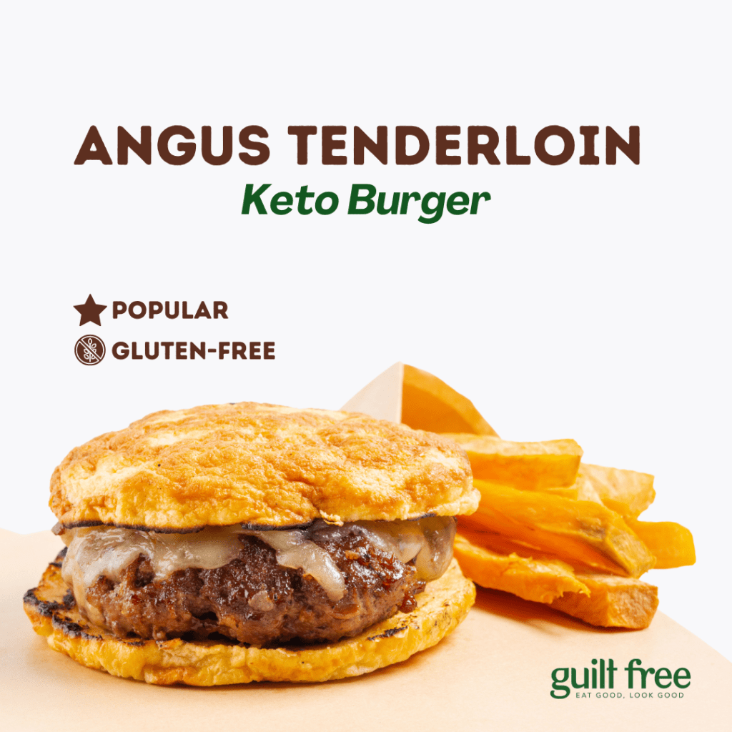 If you’re craving a burger, you can try our Angus Tenderloin Burger. It includes bacon sauce, gouda, caramelized onions, and ground tenderloin. The good news is that it only contains 450 calories and 46g of protein and also comes with air-fried sweet potatoes.